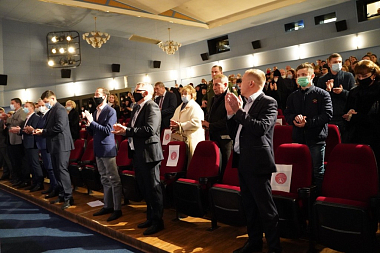Вячеслав Парфенов, врио главы Администрации Малоярославецкого района и Михаил Крылов, врио главы Администрации г. Малоярославца поблагодарили Игоря Угольникова с участниками съемочной группы и вручили им памятный знак с памятными подарками.