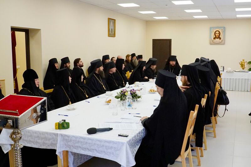 Собрание в самом его начале быстро переросло в братскую встречу. Слова выступавших часто поддерживали и развивали такие участники встречи, как архимандрит Пимен (Адарченко), член Комиссии Синодального отдела по монастырям и монашеству, настоятельница Александро-Невского Ново-Тихвинского женского монастыря г. Екатеринбурга игумения Домника (Коробейникова) и игумен Петр (Мажетов), которые смиренно делились своими размышлениями и духовными выводами.