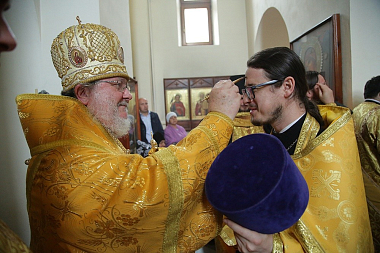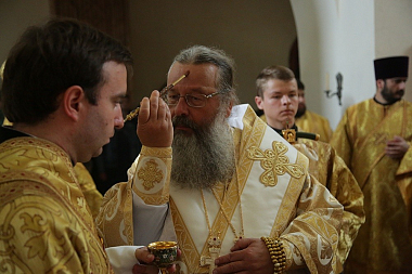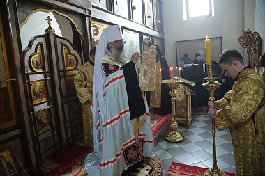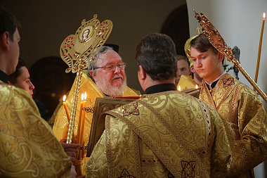 Высокопреосвященнейшему владыке сослужили: предстоятель архиепархии Канады архиепископ Оттавский и Канадский Ириней, епископ Алапаевский и Ирбитский Леонид, представитель Американской Православной Церкви при Патриархе Московском и всея Руси протоиерей Даниил Андреюк, настоятель мужского монастыря в честь новомучеников и исповедников Церкви Русской игумен Моисей (Пилатс), секретарь епархиального управления Екатеринбургской епархии иеромонах Кирилл (Корытко), ректор Екатеринбургской духовной семинарии иеромонах Корнилий (Зайцев), духовенство Екатеринбургской и Алапаевской епархий.