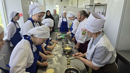 Увлекательный мастер-класс для студенток Первого православного колледжа при Николо-Сольбинском женском монастыре провел знаменитый шеф-повар Максим Сырников, его ассистентом был коллега из Новосибирска Эдуард Колчинцев. Под руководством профессионалов девочки научились готовить целых три старинных блюда русской кухни: калью, калитки и кундюмы.