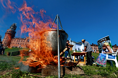 Вторая фестивальная сцена расположилась на набережной р. Сольбы у монастырской стены. Полюбившиеся гостям фестиваля народные гуляния и большой праздничный концерт рядом с живописной речкой, выставка-ярмарка хлеба и выпечки, чемпионат по приготовлению ухи, кулинарные мастер-классы по приготовлению блюд национальных кухонь, казачьи забавы, хороводы, фейерверк – всё это создало непередаваемое ощущение тепла, дружбы и всеобщей любви.