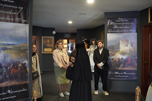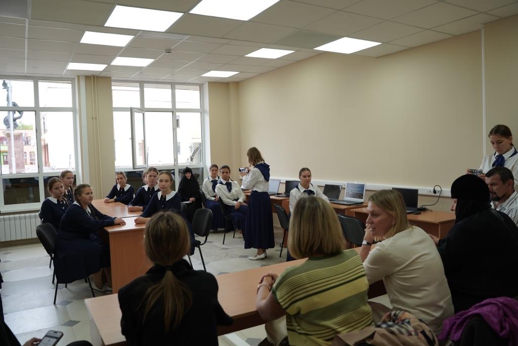 Пока же гостями Черноостровского монастыря и детского православного пансиона «Отрада» стали исполнительный директор Первой академии медиа М.Ю. Штейн, руководитель медиацентра ИПАМ С.В. Артамонова, заместитель директора по учебной части Т.В. Еремия, заместитель директора по воспитательной работе медиа К.Е. Дрегер. Гости посетили духовно-просветительский центр «София», где вместе со студентами и абитуриентами обсудили перспективы сотрудничества и запуска духовно-просветительских и профориентационных проектов для школьников на базе образовательного центра РЭУ при Свято-Никольском Черноостровском женском монастыре. Гости осмотрели духовно-просветительский центр «София» с интерактивным музеем «Малоярославец – город двух великих побед», паломнический хостел, историческое кафе «Трапезная», а также свежеотремонтированные аудитории и учебные студии нового образовательного центра. После экскурсии в одной из аудиторий прошла встреча, на которой 17 студенток и абитуриенток смогли задать руководству академии свои вопросы, послушать рассказы об организации обучения студентов, их подготовке к профессиональной деятельности, а также о возможностях поступления, о программах подготовки к сдаче ЕГЭ в лицее при РЭУ им. Г.В. Плеханова, об участии в профильных олимпиадах, которые дают дополнительные баллы при поступлении.