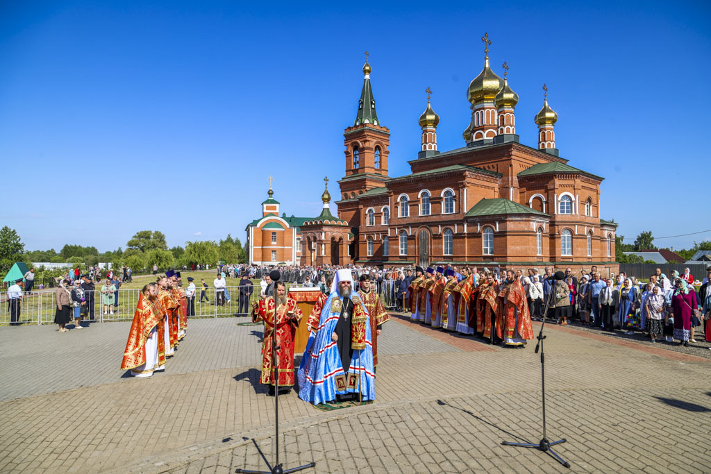 Божественную литургию под открытым небом совершили глава Тамбовской митрополии митрополит Тамбовский и Рассказовский Феодосий и епископ Мичуринский и Моршанский Гермоген.