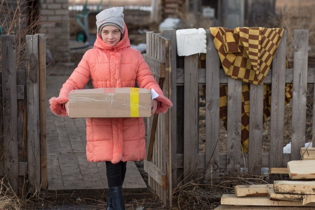 К двум детям мы не смогли доехать – к Люде и Милене. Они живут в той части Карпунина, которая называется между жителями Таежный, и весенняя распутица там так размыла дорогу, что водитель только развел руками и отказался рисковать машиной. Мы им позвонили и оставили коробки в магазине – пришлось им самим приходить забирать подарки. Милене принесли много бисера и мулине, а для ее брата Толика – большой набор “Lego“, о котором он мечтал. А Люде получилось подобрать одежду, которая ей была очень нужна.
