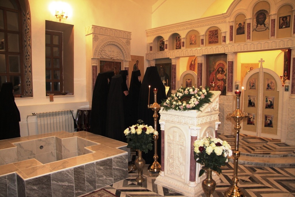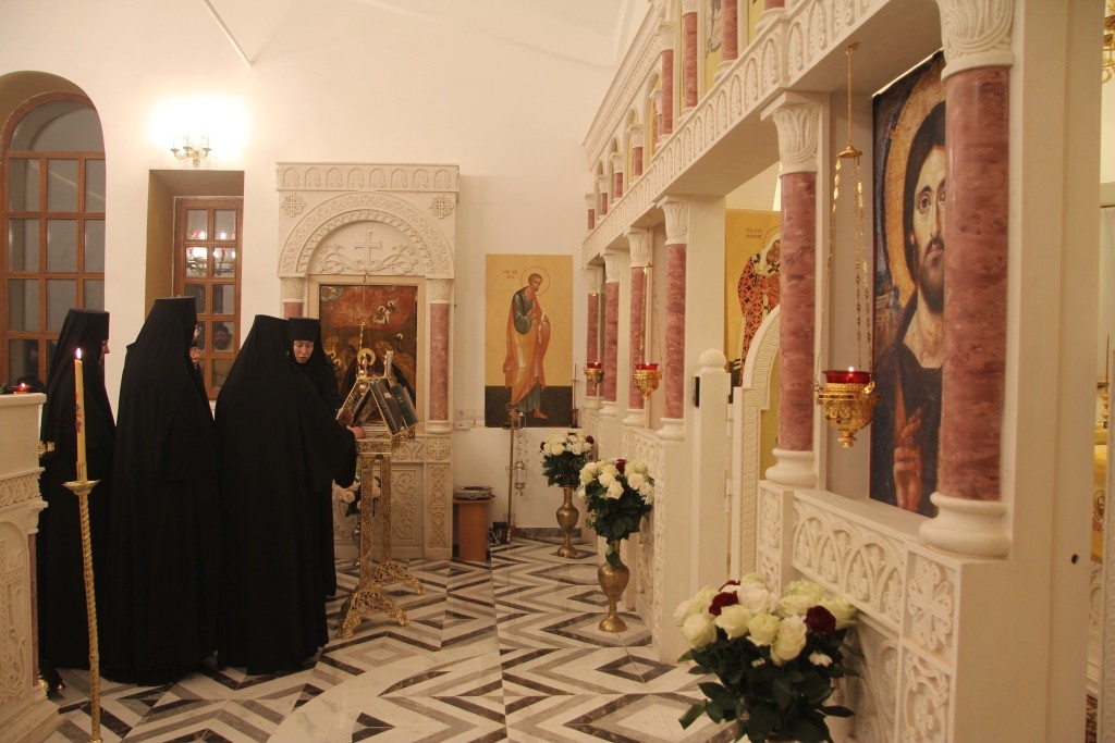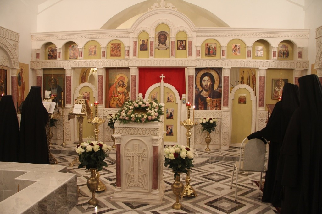 С 2019 года, как только завершились основные строительные работы, сестры каждое воскресенье читали здесь нараспев акафист святителю Спиридону, проходя крестным ходом от главного собора монастыря. И вот в храме, наконец, прошло первое богослужение.