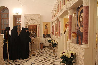 За Литургией молились: игумения Николая (Ильина), настоятельница Свято-Никольского Черноостровского женского монастыря с сестрами; игумения Анастасия (Мордмиллович), настоятельница Казанского девичьего монастыря (Калуга); игумения Феодосия (Бессонова), настоятельница Свято-Алексиевского женского монастыря (Саратов); игумения Параскева (Ляхова), настоятельница женского монастыря в честь Калужской иконы Божией Матери (Калуга); игумения Михаила (Осипова), настоятельница Свято-Успенского Гремячего женского монастыря (Перемышльский район Калужской области); настоятельницы и старшие сестры женских скитов и подворий Калужской митрополии.