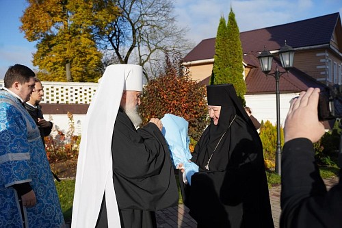 В сам день торжества над внутренними вратами Черноостровской обители настоятельница игумения Николая (Ильина) вместе с сестрами, прихожанами и гостями встречала митрополита Калужского и Боровского Климента, возглавившего Божественную литургию.