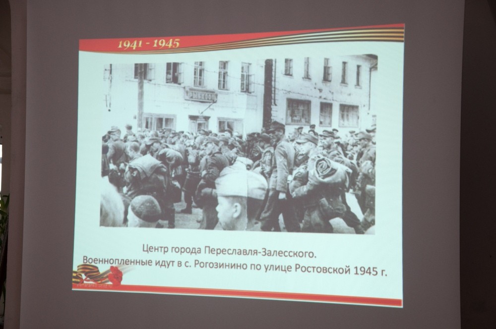 Рассказ был проиллюстрирован историческими фотографиями и фотокопиями документов. Юлия Яковлевна рассказала о создании лагеря, его численном и национальном составе, условиях жизни военнопленных, тех работах, на которые их направляли, взаимоотношениях с местным населением, кладбище и закрытии лагеря.