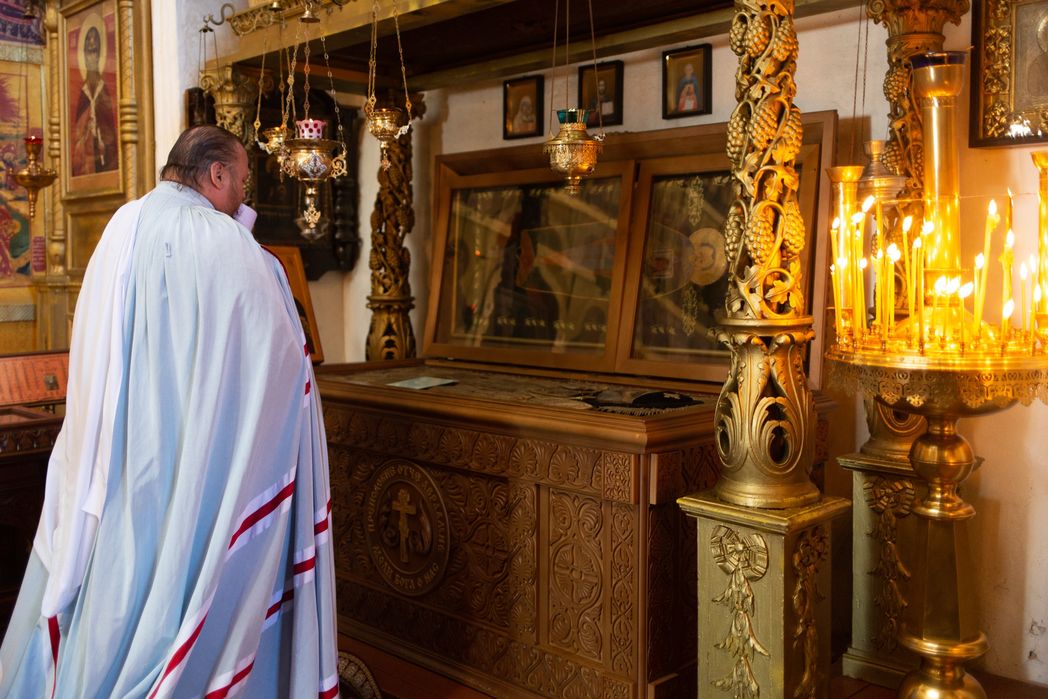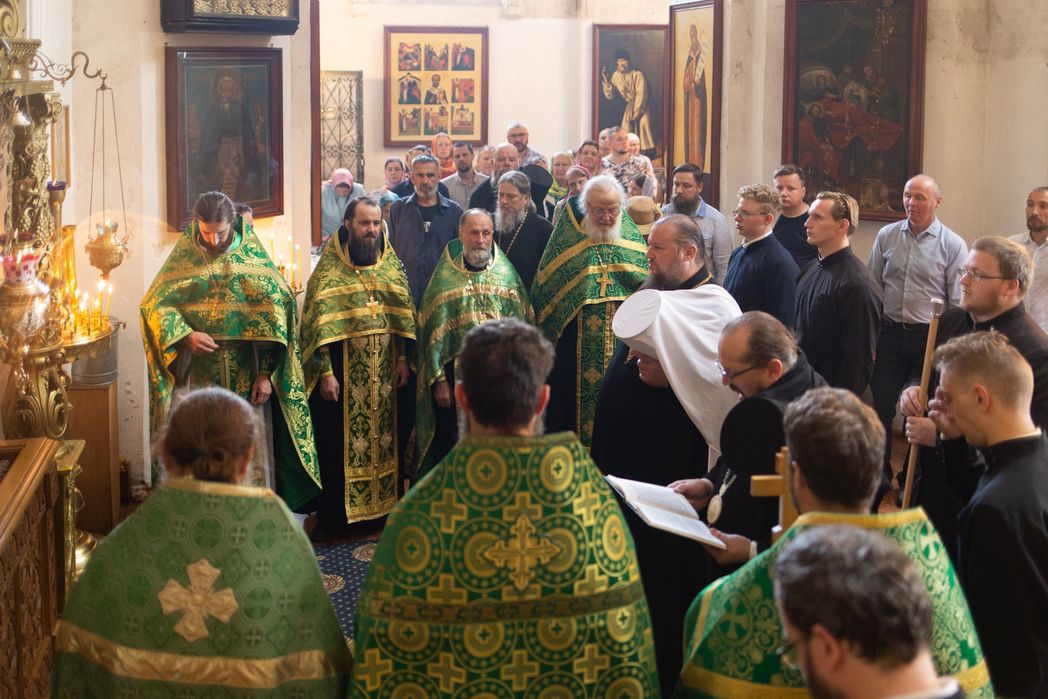На сугубой ектении митрополит Ферапонт вознес молитву о мире. Проповедь перед причащением произнес иерей Александр Поликарпов.