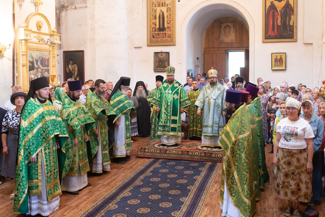 В соборе в честь иконы Божией Матери «Умиление» Преосвященным владыкам сослужили настоятель обители иеромонах Михаил (Позднев), священнослужители Галичской епархии. Диаконский чин возглавил диакон Сергий Бахтин.