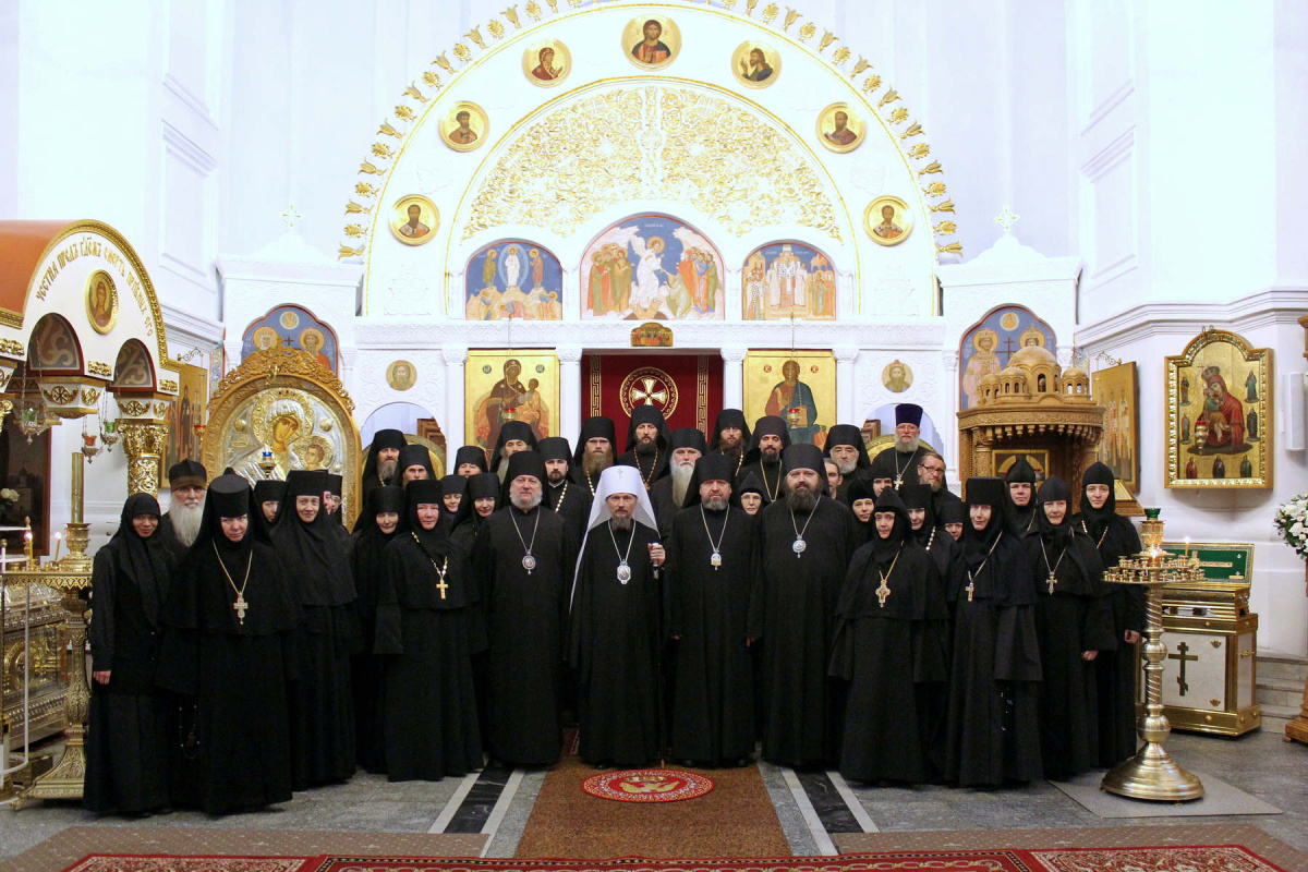 Предварила работу форума Божественная литургия, которую в Крестовоздвиженском соборе обители возглавил митрополит Вениамин. Его Высокопреосвященству сослужили председатель Синодального отдела по делам монастырей и монашества Белорусского экзархата епископ Лидский и Сморгонский Порфирий, епископ Полоцкий и Глубокский Игнатий, председатель Синодальной комиссии по канонизации святых Белорусского экзархата епископ Борисовский и Марьиногорский Амвросий, наместник Зосимо-Савватиевского мужского монастыря д. Великой Кракотки игумен Михей (Барановский), наместник Кутеинского мужского монастыря г. Орши игумен Нил (Подобед), наместник Афанасиевского мужского монастыря г. Бреста иеромонах Досифей (Гришута), и. о. наместника Никольского мужского монастыря г. Гомеля игумен Феодорит (Золотарев), насельники и клирики обителей – участники монашеского направления Рождественских чтений.