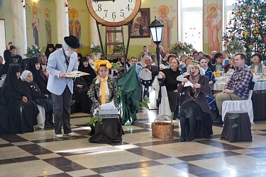 По окончании Литургии в большой трапезной пансиона «Отрада» был организован праздничный обед. Чтение за трапезой по монастырской традиции – предание о явлении Ватопедской иконы «Отрада и Утешение». Сказочное представление после трапезы.