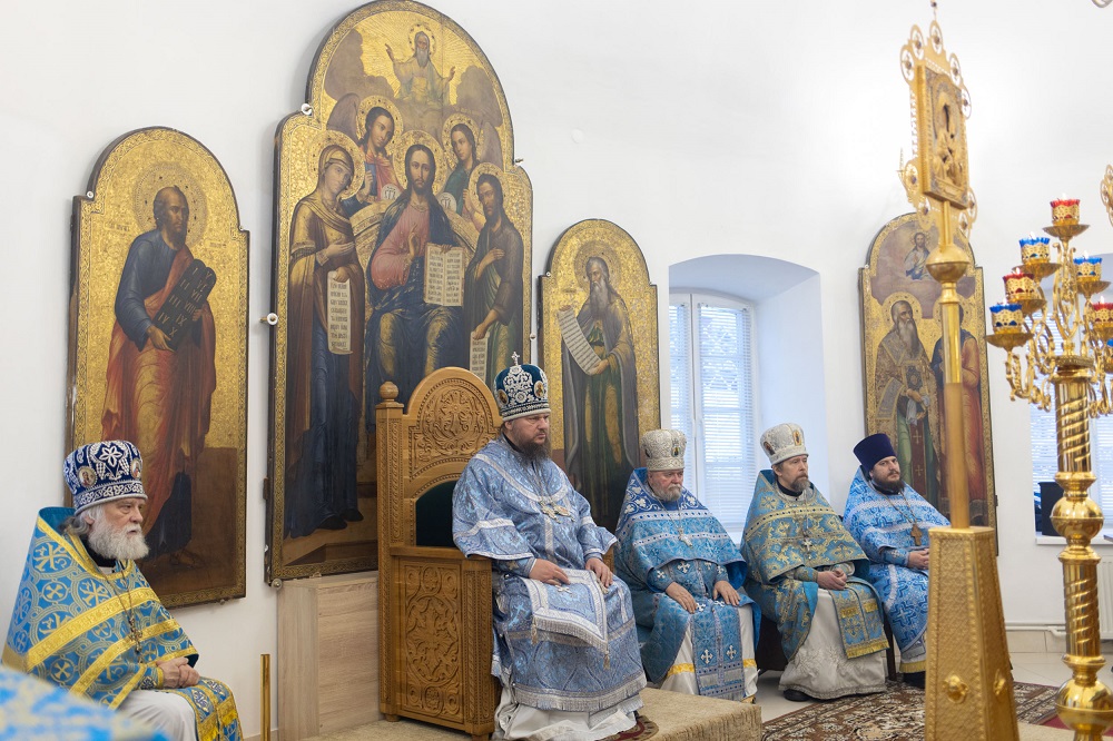 Его Высокопреосвященству сослужили: протоиерей Валерий Бунтеев, протоиерей Игорь Шашков, протоиерей Виталий Шастин, протоиерей Димитрий Карнаух, иерей Николай Недялко, диакон Сергий Бахтин, диакон Сергий Соловьёв.