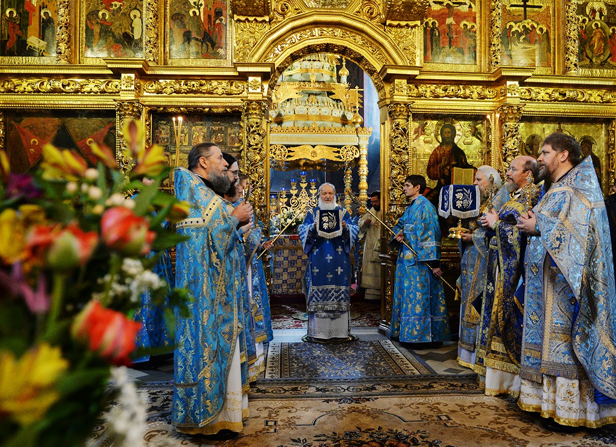 Предстоятель Русской Православной Церкви совершил Божественную литургию в соборном храме Смоленской иконы Божией Матери.