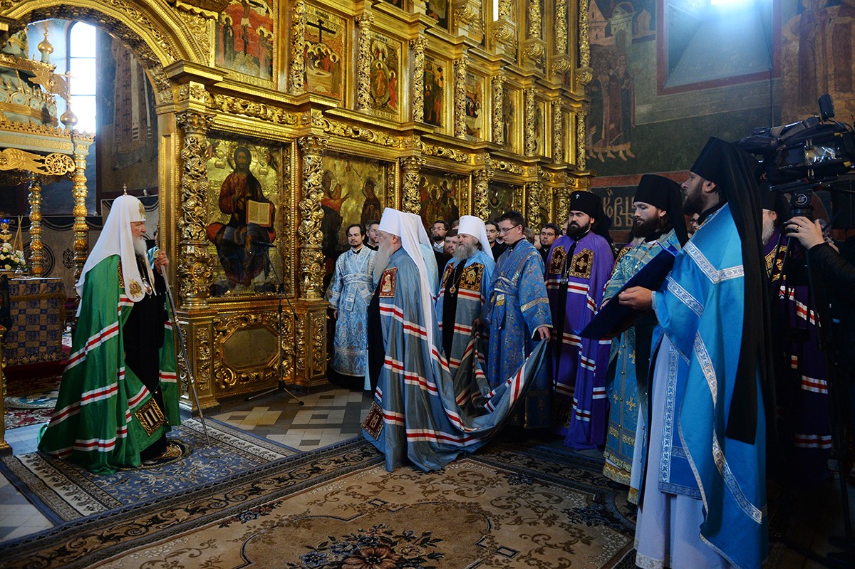 После сугубой ектении Предстоятель Русской Православной Церкви вознес молитву о мире на Украине.