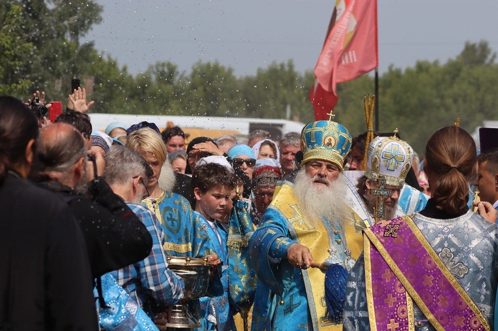 В этот день в храме было совершено три Божественных литургии: в полночь, за которой молились участники Всероссийского крестного хода «Барнаул – Коробейниково – 2022», ранняя Литургия в 4 часа утра и поздняя Литургия в 9 часов.