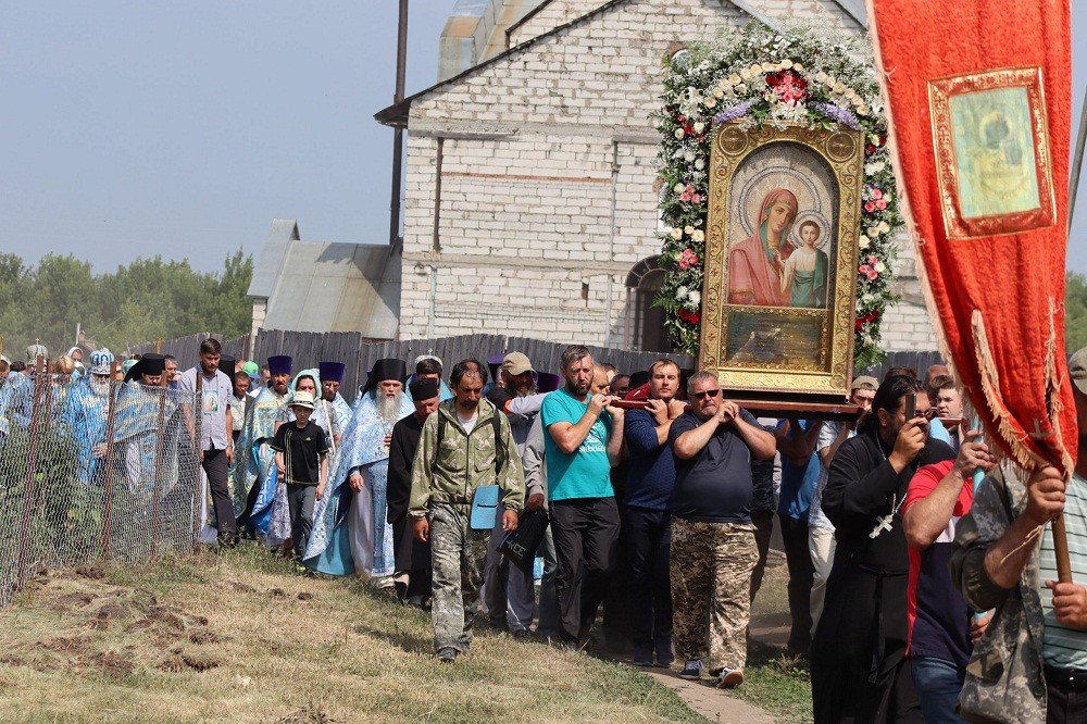 После богослужения, по случаю престольного праздника, был совершен крестный ход вокруг обители с чудотворной Коробейниковской иконой.