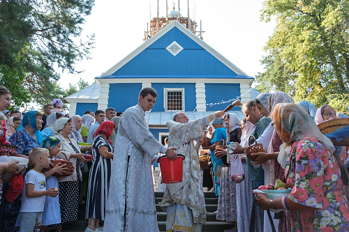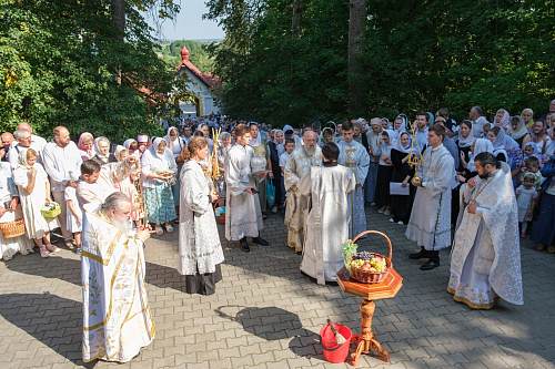 По окончании Божественной литургии был совершен крестный ход вокруг монастыря с чудотворным списком иконы Божией Матери «Ченстоховская», пребывающим в обители. Затем архиепископ Иоанн по традиции совершил чин освящения фруктовых плодов и винограда, принесенных в храм верующими.