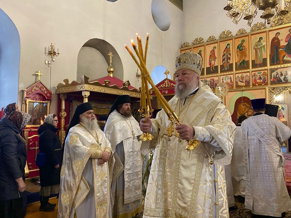 Епископ Иннокентий обратился к собравшимся со словом проповеди в котором поздравил настоятеля монастыря игумена Афанасия и прихожан с престольным торжеством.