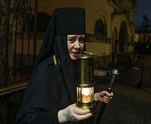По окончании Литургии состоялась встреча Благодатного огня, доставленного со Святой Земли.