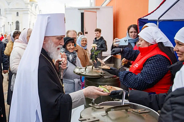 В завершение всем верующим были подарены иконы святителя Тихона, Патриарха Московского, а на монастырской территории устроена полевая кухня.