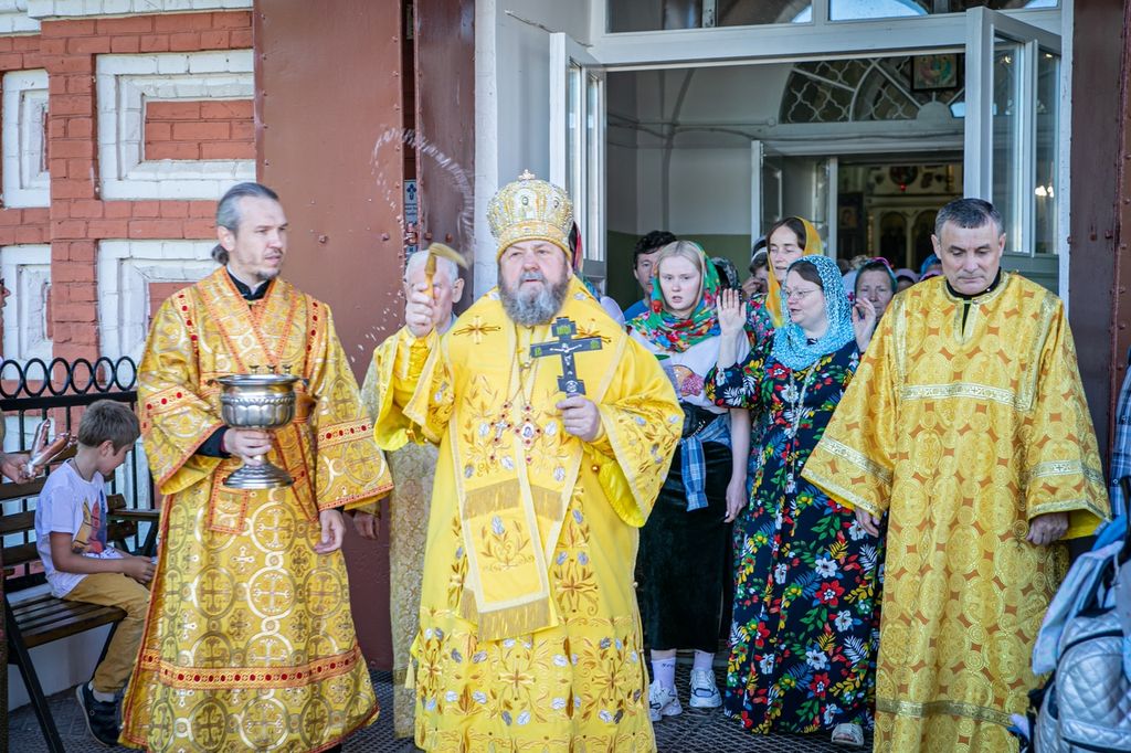 По окончании Божественной литургии Его Высокопреосвященство вместе с сослужившим ему духовенством совершил крестный ход вокруг обители.