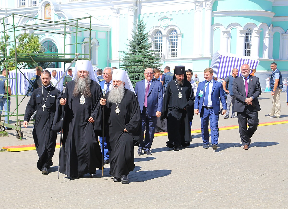 На праздничной литургии в Дивееве присутствовали исполняющий обязанности вице-губернатора Нижегородской области Евгений Люлин, заместитель министра финансов России Андрей Иванов, председатель комитета Совета Федерации по конституционному законодательству и государственному строительству Андрей Клишас, главный федеральный инспектор по Нижегородской области Александр Мурзин, заместитель председателя областного Законодательного собрания Ольга Щетинина, экс-губернатор Нижегородской области Валерий Шанцев, директор Российского федерального ядерного центра – Всероссийского научно-исследовательского института экспериментальной физики (РФЯЦ-ВНИИЭФ) Валентин Костюков, почетный научный руководитель РФЯЦ-ВНИИЭФ Радий Илькаев, председатель Союза кинематографистов России Никита Михалков, командующий Приволжским округом войск Национальной гвардии РФ генерал-полковник Александр Порядин, участники IX Международного фестиваля-конкурса православной и патриотической песни «Арзамасские купола», участники первого межрегионального форума православной молодежи «Радость моя», деятели культуры, представители органов власти и бизнеса, образовательный учреждений, общественных организаций.