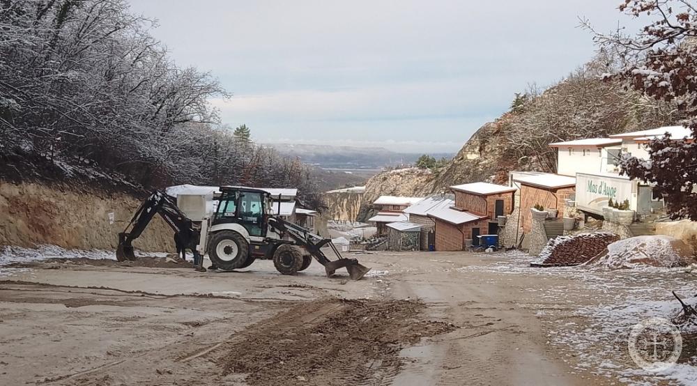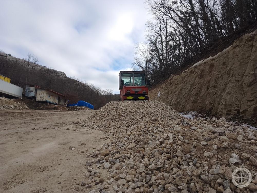 По благословению исполняющего обязанности игумена монастыря иеромонаха Кронида (Печевистого) проводятся работы по разравниванию дороги и площадок, устройству ливневок.