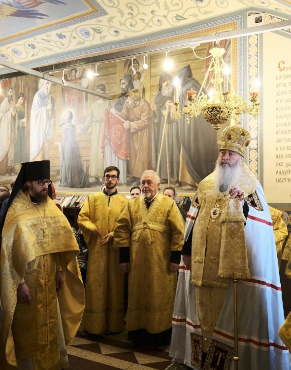 Его Высокопреосвященству сослужили настоятель Спасо-Евфимиевого мужского монастыря иеромонах Арсений (Смирнов) с собором духовенства.