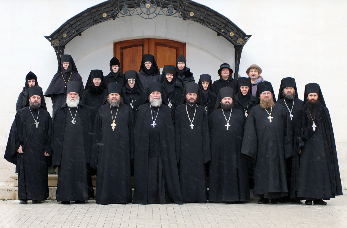 Перед началом заседания во Введенском храме обители был соборно отслужен молебен небесному покровителю монастыря святителю Иову, Патриарху Московскому.