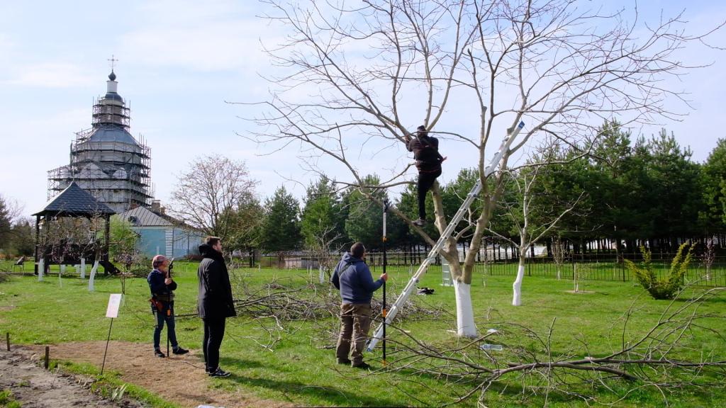 Работы по оздоровлению деревьев предстояло немало – обрезать лишние и переросшие ветки, придать им правильное направление роста, сформировать крону и сделать вид зеленых насаждений эстетичным. Деревья в монастыре различны – это грецкий орех, сливы, яблони, груши. Уход за плодовым садом необходим, чтобы сохранить хороший урожай. Специалисты сделали правильную обрезку не только лиственным породам деревьев, но и хвойным, растущим на территории обители. И еще окультурили красавицу-орхидею. После большой работы стало видно – сад вздохнул.