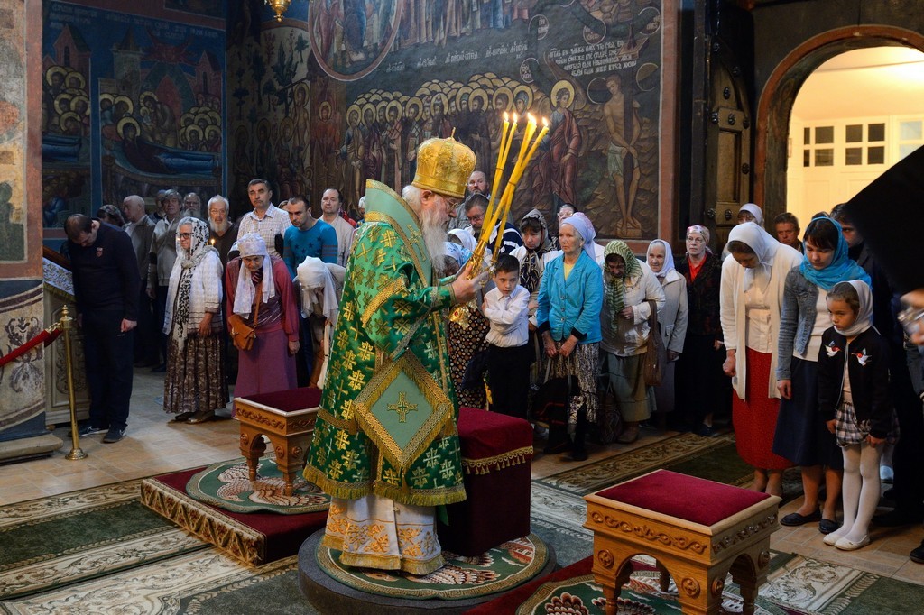 Богослужебные песнопения исполняли два хора – монашеский и из прихожан и паломниц обители.