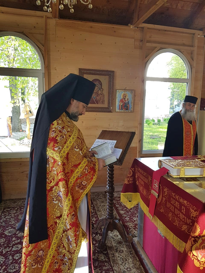 За Литургией после сугубой ектении отец Агафангел вознес молитву во время распространения вредоносного поветрия.