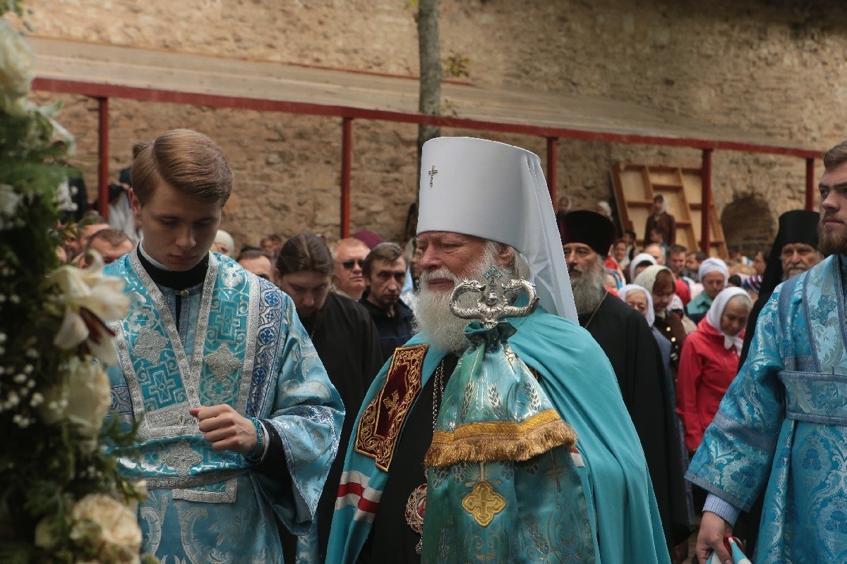 По окончании богослужения состоялся крестный ход вокруг обители с чудотворной иконой Успения Божией Матери, в котором приняли участие губернатор Псковской области А.А. Турчак и другие официальные лица, а также многочисленные паломники.