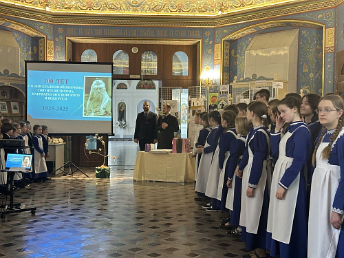 В день Благовещения Пресвятой Богородицы после Божественной литургии в школьном храме Свято-Владимирской школы Воскресенского Новодевичьего женского монастыря прошли памятные торжества, посвященные 100-летию преставления Патриарха Тихона.