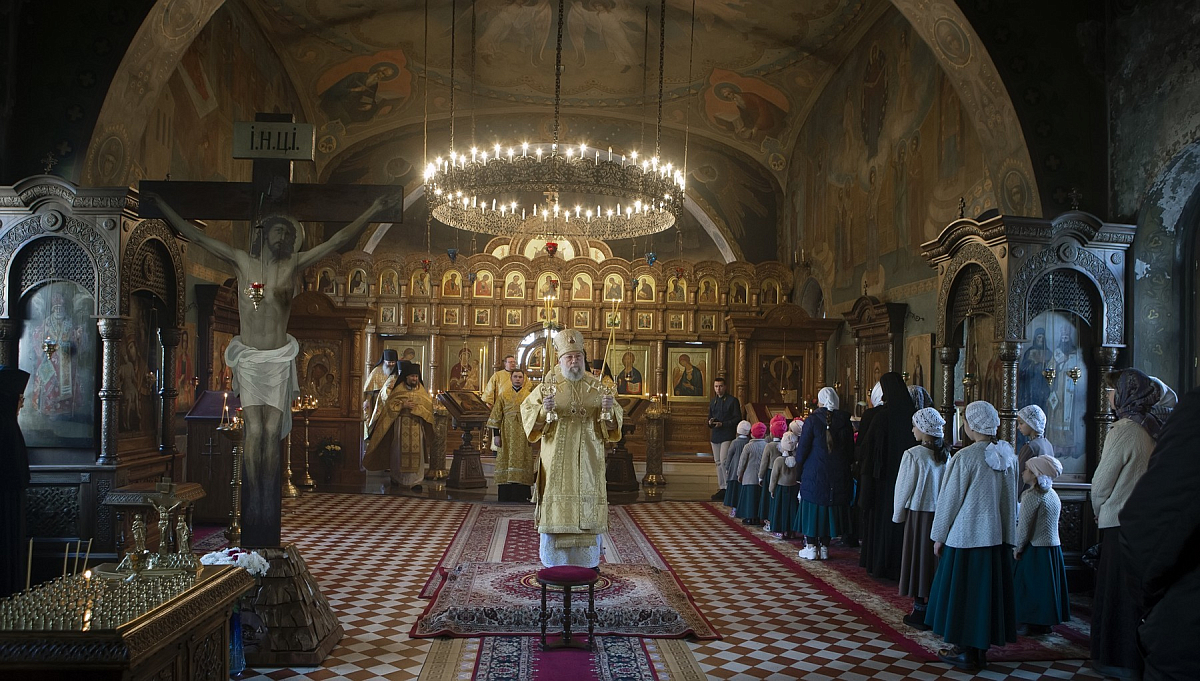 За богослужением молились игумении обителей, монашествующие, воспитанницы детского приюта «Ковчег», созданного при Введенском Островном монастыре.