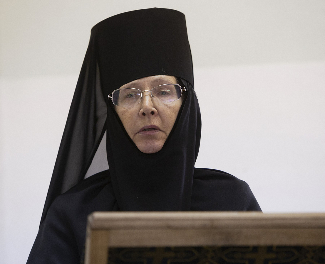 На тему «Отечество небесное и Отечество земное. Патриотизм в духовной жизни монашествующих» рассуждала игумения Феодора (Трубач), настоятельница Благовещенского женского монастыря г. Киржача. Ее Высокопреподобие отметила, что на протяжении веков монастыри возводились не только как крепости духовные, но и как реальные форпосты. В ее сообщение были приведены реальные факты борьбы монахов за свое Отечество земное: Димитрий Иванович Донской и иноки Пересвет и Ослябя, которых благословил на битву прп. Сергий Радонежский, осада Троице-Сергиева монастыря в начале XVII века и многие другие примеры.
