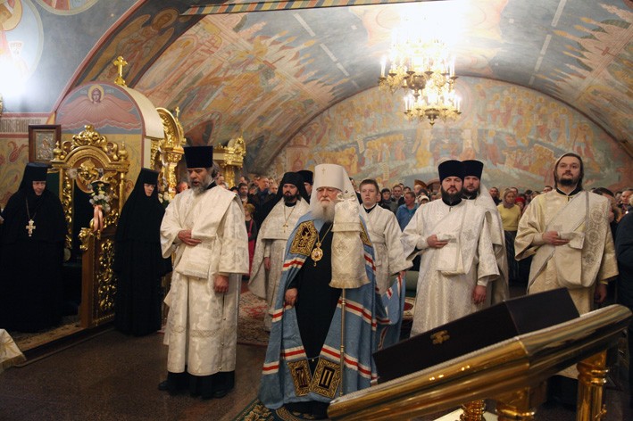 Праздничное богослужение посетили не только многочисленные паломники, но и члены Наблюдательного совета по возрождению Свято-Введенского Толгского монастыря во главе с помощником Президента Российской Федерации И.Е. Левитиным.