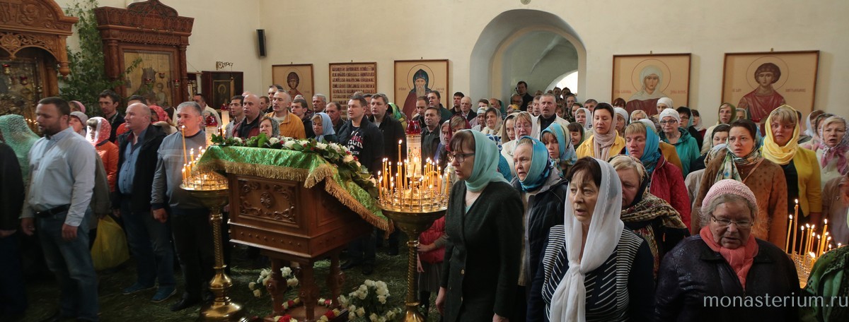 За богослужением: молились игумения Агния (Сударикова) с сестрами, прихожане и паломники обители.