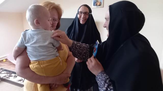 Церковный приют при Иверском монастыре в Ростове-на-Дону, где проживают беженцы, посетили сотрудники Ростовского дома-интерната для пожилых людей и передали гостинцы и игрушки, сделанные руками подопечных дома-интерната, а также подарили икону.