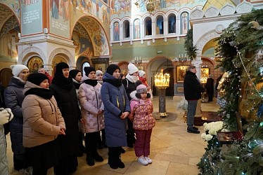 7 января 2024 года воспитанницы детского православного пансиона «Отрада» при Свято-Никольском Черноостровском женском монастыре города Малоярославца Калужской области посетили Патриаршую елку в Храме Христа Спасителя.