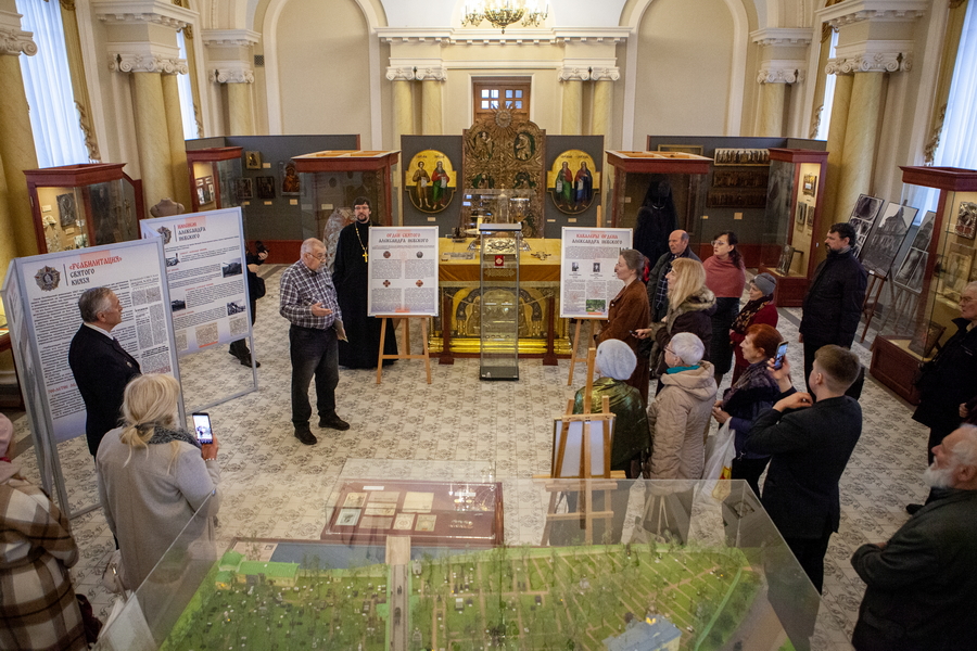 Экспозиция дополнена биографиями нескольких кавалеров советского ордена Александра Невского – ветеранов Великой Отечественной войны. Среди них – прадед секретаря наместника Лавры иеромонаха Алексия (Степанова) гвардии полковник Александр Сергеенко. На выставке можно увидеть боевые награды Александра Ильича, включая подлинный орден Александра Невского.