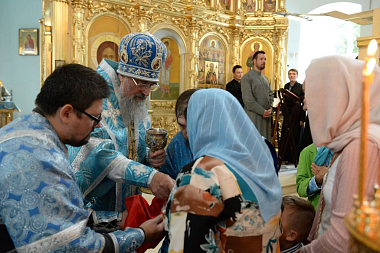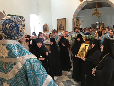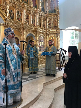В дар обители архиерей преподнес серебряные евхаристические сосуды, а в благословение сестрам и прихожанам передал Иверскую икону Божией Матери, написанную на Святой Горе Афон.