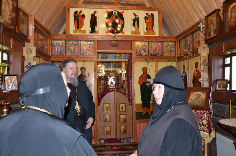 Игумении Мария и Антония посетили Божественную литургию в Покровском храме общины, ознакомились с экспозицией, посвященной воинам, сражавшимся на Смоленском фронте в годы Великой Отечественной войны, осмотрели мемориал боевой славы, погост, сохранивший фундамент церкви, в которой принял святое Крещение прославленный адмирал Нахимов. В сопровождении старшей сестры монашеской общины монахини Ангелины (Нестеровой) и духовника сестричества матушки побывали в скиту предполагаемого монастыря. В завершение монахиня Ангелина рассказала гостям о дальнейших планах по строительству обители.