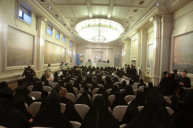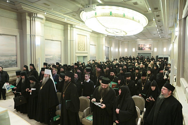 В актовом зале Сретенской семинарии собрались более 150 участников − архиереи Русской Православной Церкви, наместники, игумены и игумении, насельники столичных и епархиальных обителей, а также гости Чтений, прибывшие из Греции, со Святой Горы Афон, из Сербии, США и Великобритании. Утреннее пленарное заседание открыл Высокопреосвященный Марк, архиепископ Берлинско-Германский и Великобританский (РПЦЗ).