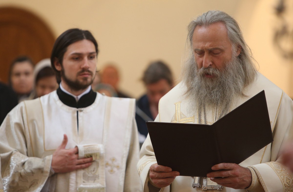 Его Высокопреосвященству сослужили: настоятель храма «Большое Вознесение» у Никитских ворот, секретарь Патриарха Московского и всея Руси по г. Москве протоиерей Владимир Диваков; наместник Николо-Угрешского ставропигиального мужского монастыря игумен Варфоломей (Петров); наместник Высоко-Петровского ставропигиального мужского монастыря Москвы игумен Петр (Еремеев); настоятель келии Святой Анны монастыря Иверон Святой Горы Афон архимандрит Антипа; настоятель храма Воскресения Христова в Кадашах протоиерей Александр Салтыков; настоятель храма Живоначальной Троицы на Грязех у Покровских ворот протоиерей Иоанн Каледа, монастырское духовенство; клирик Благовещенской епархии, прибывший на собеседование в Синодальный отдел по монастырям и монашеству.