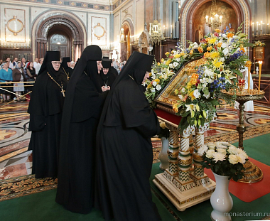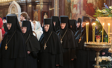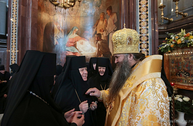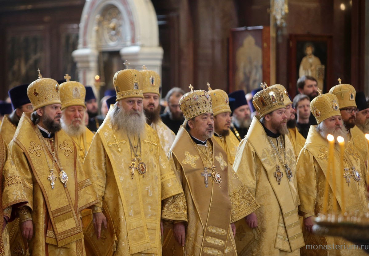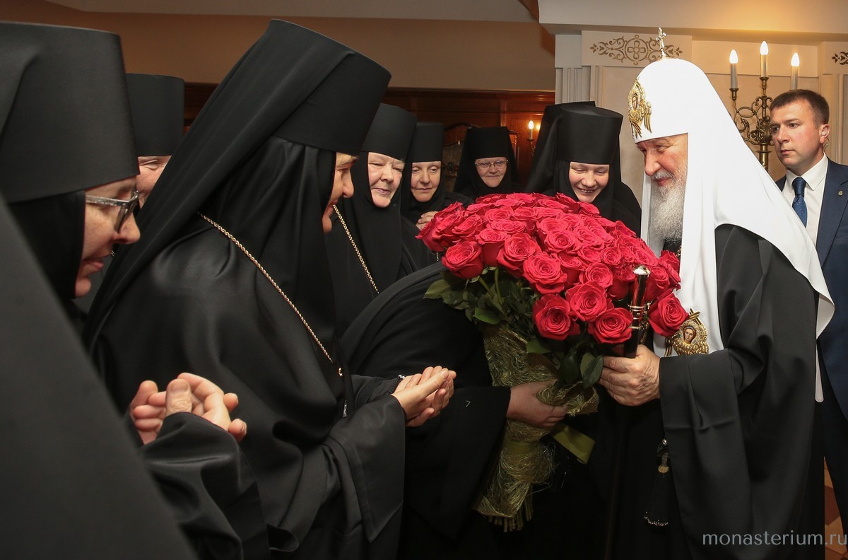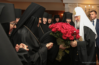 От лица монашествующих Русской Православной Церкви с днем тезоименитства Святейшего Патриарха Кирилла поздравил председатель Синодального отдела по монастырям и монашеству, архиепископ Сергиево-Посадский Феогност.