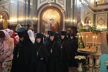 За Литургией молились представитель Патриарха Антиохийского и всего Востока при Патриархе Московском и всея Руси митрополит Филиппопольский Нифон, председатель Синодального отдела по взаимоотношениям Церкви с обществом и СМИ В.Р. Легойда, генеральный директор художественно-производственного предприятия Русской Православной Церкви «Софрино» Е.А. Пархаев, президент Международного общественного фонда единства православных народов В.А. Алексеев, настоятельницы ряда женских монастырей Русской Православной Церкви, многочисленные паломники и жители столицы.
