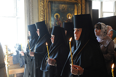За богослужением молились: почетный настоятель храма протопресвитер Матфей Стаднюк; игумения Иулиания (Каледа), заместитель председателя Синодального отдела по монастырям и монашеству, настоятельница Зачатьевского ставропигиального женского монастыря Москвы; игумения Феофания (Мискина), настоятельница Покровского ставропигиального женского монастыря Москвы; игумения Викторина (Перминова), настоятельница Богородице-Рождественского ставропигиального женского монастыря Москвы; игумения Филарета (Смирнова), настоятельница Московского подворья Успенского Пюхтицкого ставропигиального женского монастыря, а также сестры обителей.
