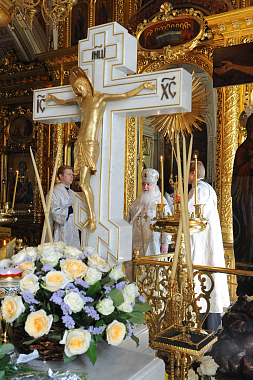Его Высокопреосвященству сослужили настоятель Богоявленского кафедрального собора в Елохове протоиерей Александр Агейкин и московское духовенство.
